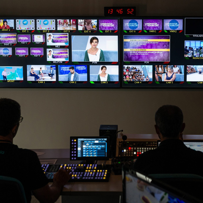 Otros: 2 CUE 19″, MOFO Tectronic WSM 5250., multiview 16 canales, Marshal V-R173 DW, Soundcraft Si3, 8 micros inalámbricos Sennheiser + 2 mano + 2 sistemas In Ear, Matriz Kumo 64X64, Intercom AEQ/Kroma, Ingesta Multicanal MIP, Glue Albala, Grúa 7m 3 ejes, Steady cam